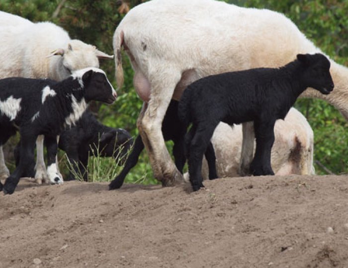 Wir decken unsere reinen Skudden mit einem Dorperbock. Das Dorperschaf ist eine speziell gezüchtete Fleischrasse mit ähnlichen Fleischeigenschaften wie die Skudden. Die Lämmer kommen sehr klein zur Welt und zeigen eine erfreuliche Entwicklung.