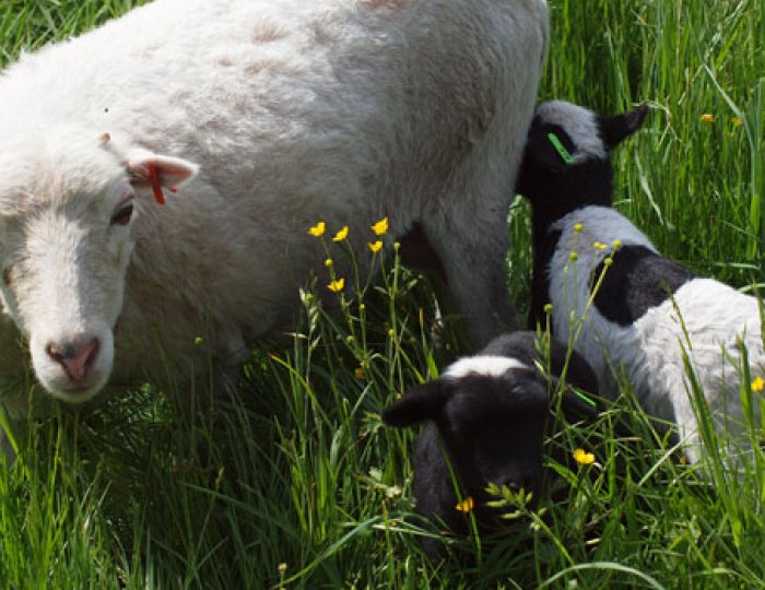 Zum Beweiden der Flächen, wie Obstgärten und kleine Parzellen, welche nicht mit dem Hochlandrind bestossen werden können, waren wir immer auf Schafe angewiesen. Da das heimische weisse Alpenschaf häufig Probleme mit der Klauengesundheit hatte, wurde der Arbeitsaufwand mit zunehmender Herdengrösse zum limitierenden Faktor. Durch Zufall sind wir auf das Skuddenschaf aufmerksam geworden.